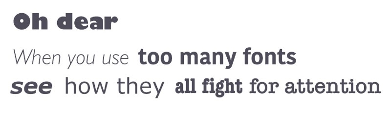 使用超過 3 種不同的字體使網站看起來非結構化和不專業,太多的類型尺寸和樣式一次也可能破壞任何布局。