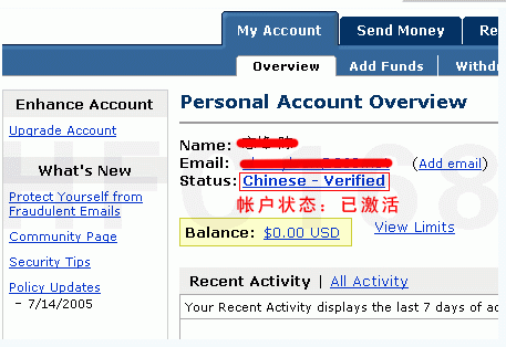 4.重新登錄Paypal,查看帳戶狀態(tài):
