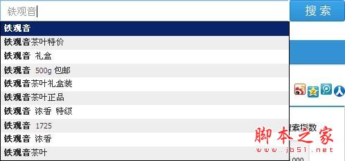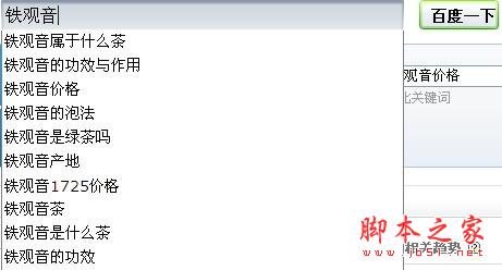 關鍵詞挖掘工具一搜一大堆,幾乎都是大同小異的,百度指數是一款不錯的工具,除了可以通過工具來查詢關鍵詞的搜索量,還可以挖掘到一些不錯的關鍵詞,但在轉化率方面百度指數工具遠遠沒有淘寶指數工具來的好用,同樣是搜索鐵觀音,看看他們的百度指數下拉框的顯示: