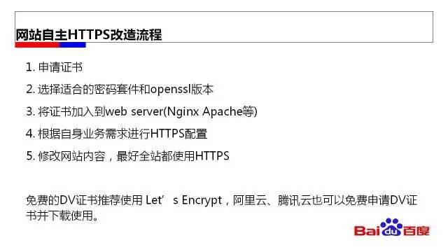 總結以上兩種方案,自己做HTTPS的改造可以貼合自己的業務做定制,比較靈活,問題是對技術能力要求高,成本和復雜度也很高,如果網站業務比較特殊的可以選擇自己做。