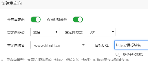 第四步:新增重定向,保留URL參數(shù)可設置關閉或打開( 301 需要保留),兩者區(qū)別如下:
