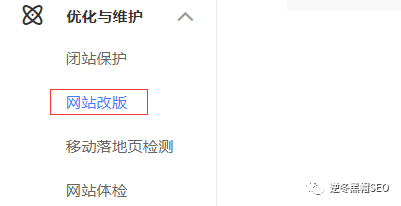2:選擇你要做 301 的站點,選擇網(wǎng)站改版。