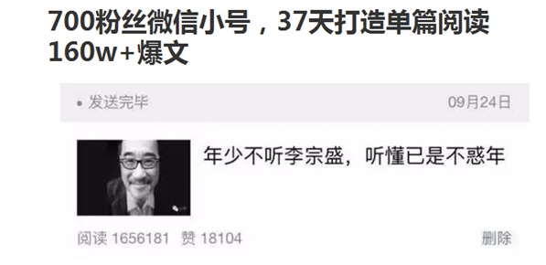 現在人都缺乏認同感,總覺不被別人理解,但是讀到一些陳年爛雞湯,立馬感同身受,多年不被人理解的小委屈終于有人說透了,終于被人理解了,然后一個個傲嬌的想著“我要轉發(fā)讓別人了解我的感受”。這就是為什么近些年來,公眾號10+閱讀的文章很多都是雞湯文。一個典型,一個不足千粉的小號打造了一篇《年少不聽李宗盛,聽懂已是不惑年》的爆文,但筆者看來,也就是新瓶裝舊雞湯,讓多少老爺們兒矯情了一把“都沒人懂我的情懷,這篇文章說中了,我轉!”,一不小心就爆了。