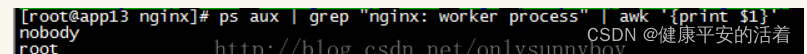 ps aux | grep "nginx: worker process" | awk'{print $1}'