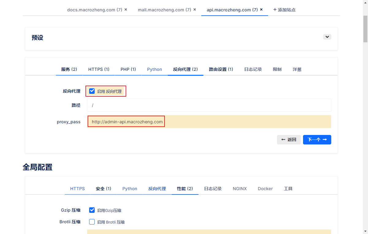 # 靜態代理,訪問mall文檔網站docs.macrozheng.com# 靜態代理,訪問mall前端項目mall.macrozheng.com# 動態代理,訪問mall線上APIapi.macrozheng.com