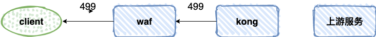 然后觀察waf的日志,以及kong的日志,跟生產出現的499錯誤碼表現是一樣的。