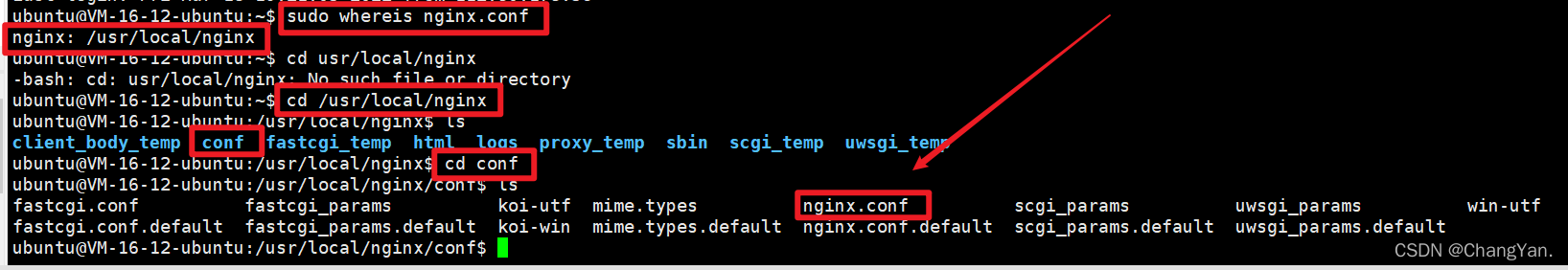 找到有nginx.conf文件的目錄,我們可以用sudo whereis nginx.conf找到該路徑然后進入該目錄