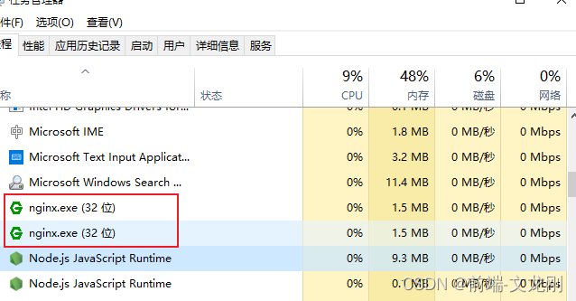 此時:任務管理器里面就有了運行的Nginx程序