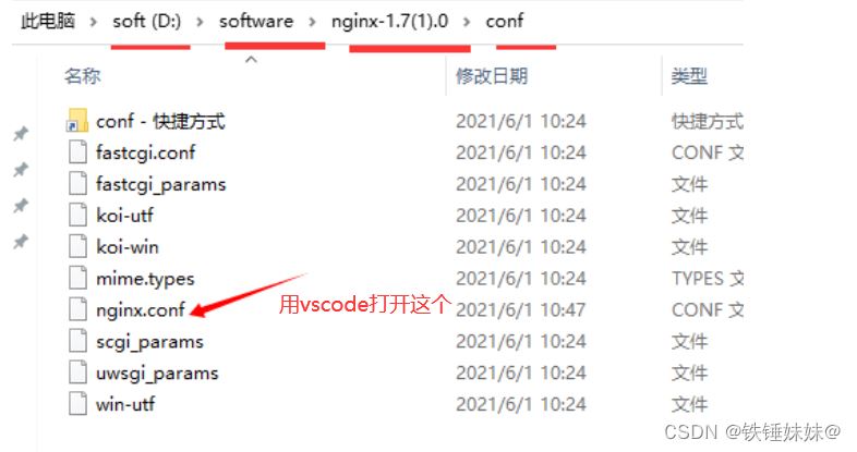 然后用vscode代碼編輯器打開解壓文件夾下的conf文件夾的nginx.conf文件,這是一個非常重要的文件,用來配置nginx服務器,默認的配置也存放在此。
