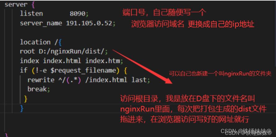 打開nginx.conf文件,下面是我的配置,可以復制一份,根據情況改下端口號和瀏覽器訪問域名