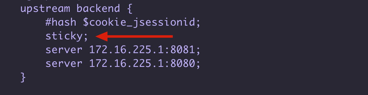 @Autowiredlateinit var env: Environment@GetMapping("/server")fun server(request:HttpServletRequest):String { //獲取當(dāng)前服務(wù)的端口 val port = env.getProperty("local.server.port") println("now port: $port") //調(diào)用了request.getSession(true) 則會(huì)沒(méi)有session的時(shí)候創(chuàng)建session val session = request.getSession(true) val name = session.getAttribute("name") println("name: $name") if (name == null){ session.setAttribute("name","johnny") } return "success"}1.2 hash $cookie_jsessionid;配置