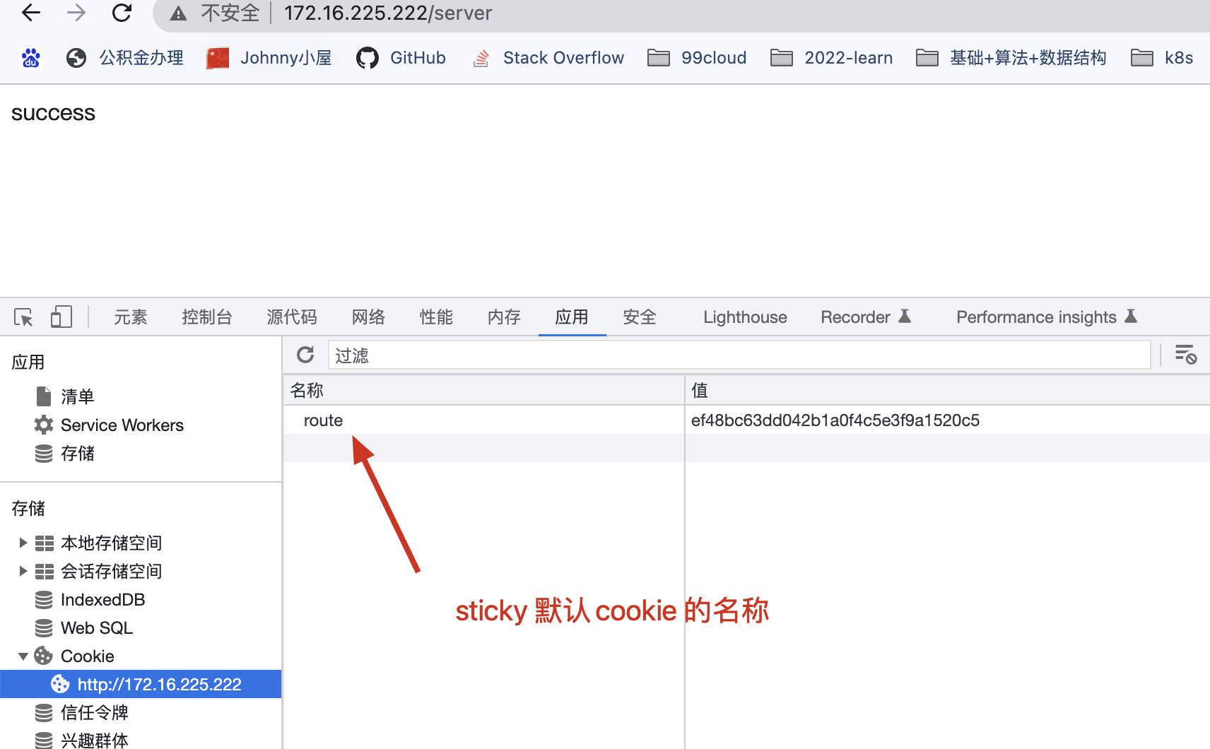可以看到stick 幫我們下發(fā)了 route 這個(gè)cookie , 并且這個(gè)不會(huì)變 默認(rèn)關(guān)閉瀏覽器就會(huì)失效
