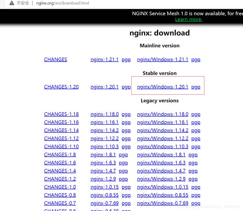 下載鏈接:http://nginx.org/en/download.html.