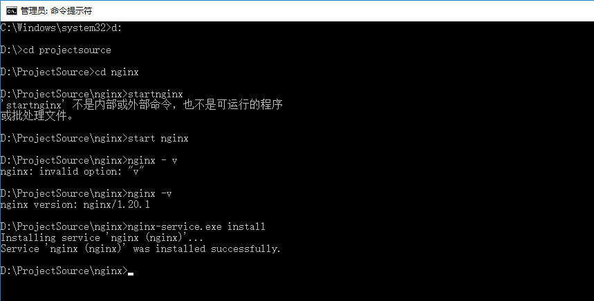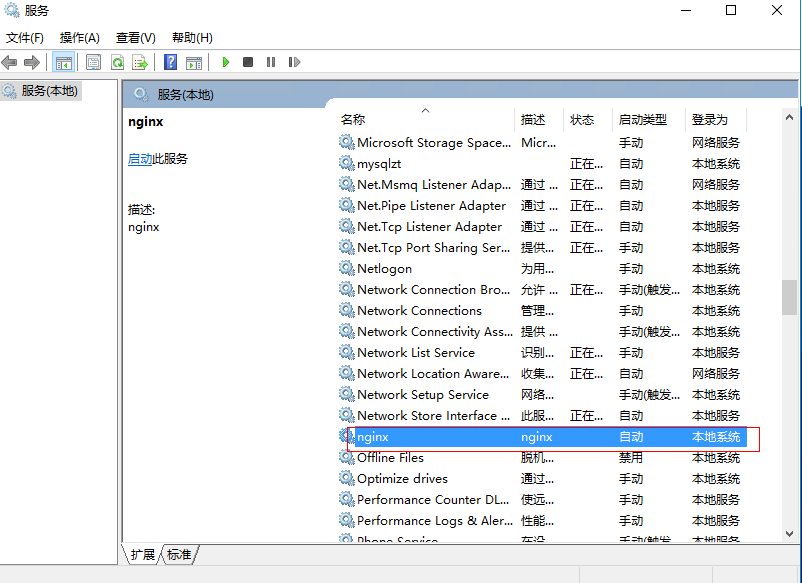 4、cmd(管理員身份)進入nginx的安裝目錄,執(zhí)行:nginx-service.exe install命令,然后進入系統(tǒng)服務,看是否注冊nginx服務成功并且檢查是否設置為自動啟動