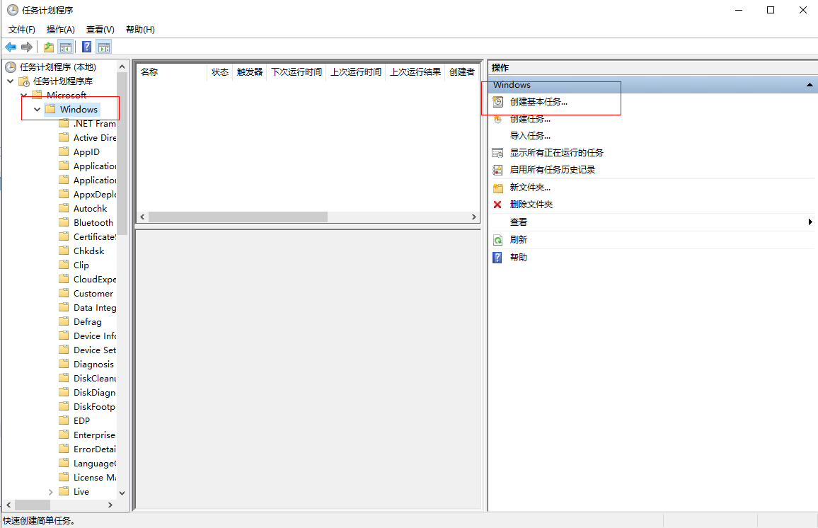 2、找到windows目錄,在當下目錄創(chuàng)建新任務