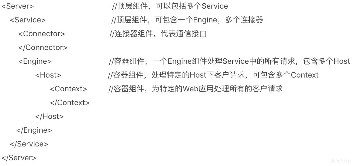 觀察Tomcat的server.xml配置文件。Tomcat采用了組件化設計,最外層即是Server
