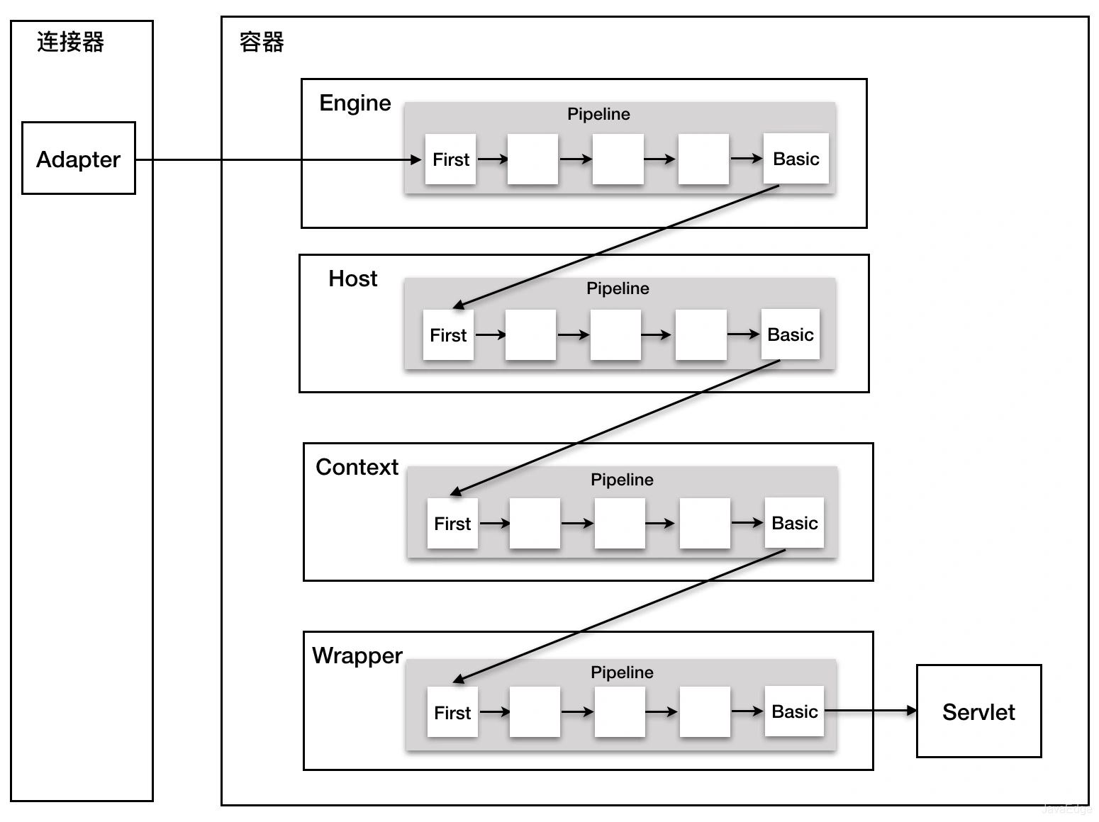 比如Engine中Pipeline需要調用下層容器Host中的Pipeline。