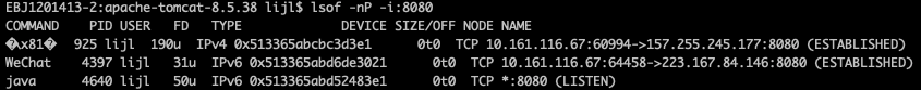 lsof -nP -i:8080