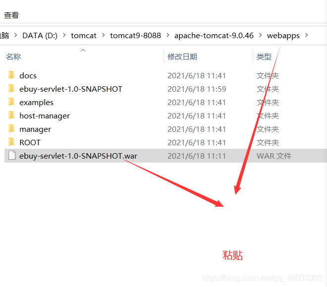 然后到tomcat的webapps下進行粘貼,如下圖