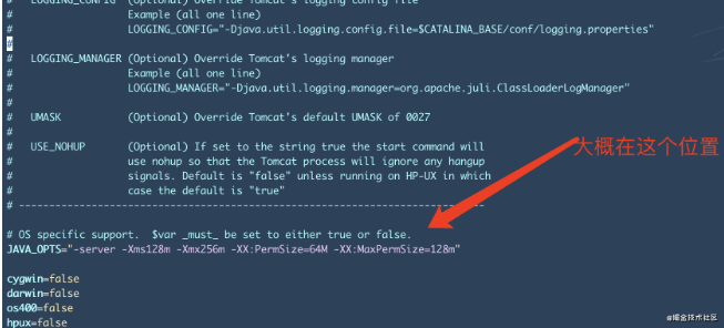 在Tomcat的bin目錄下面, 打開catalina.sh 文件, 在正式代碼的第一行加上這句JAVA_OPTS="-server -Xms128m -Xmx256m -XX:PermSize=64M -XX:MaxPermSize=128m"