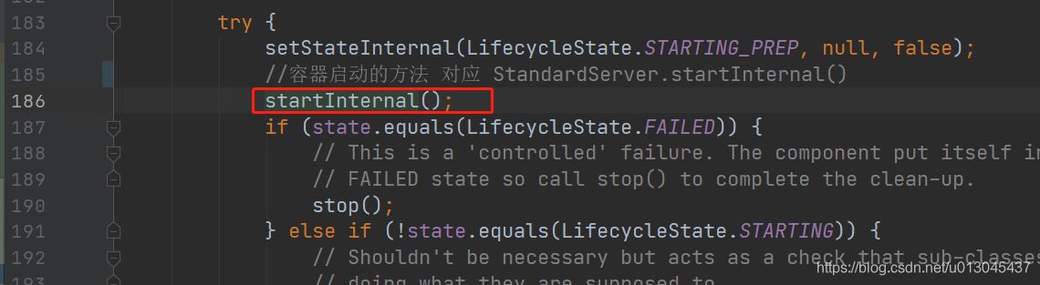 2)ContainerBase中的startInternal()方法 核心代碼,從這開(kāi)始啟動(dòng)StandardContext容器