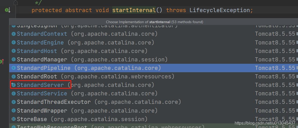 從上面我們知道現(xiàn)在我們調(diào)用的是StandardServer容器的startInternal()方法,所以我們這里選擇的是StandardServer