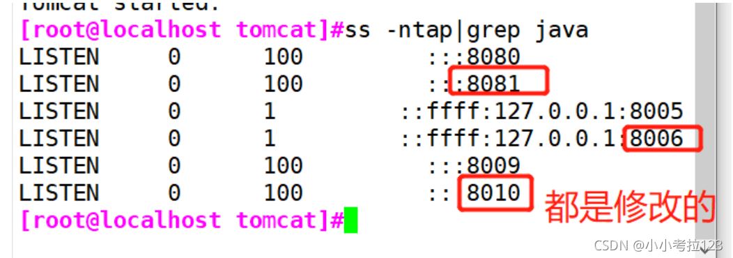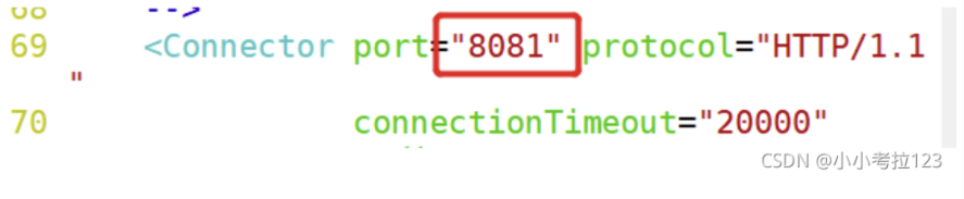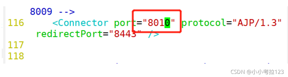 vim /usr/local/tomcat/tomcat2/conf/server.xml ?22 <Server port="8006" shutdown="SHUTDOWN">69 ? ? <Connector port="8081" protocol="HTTP/1.1"116 ? ? <Connector port="8010" protocol="AJP/1.3" redirectPort="8443" />?