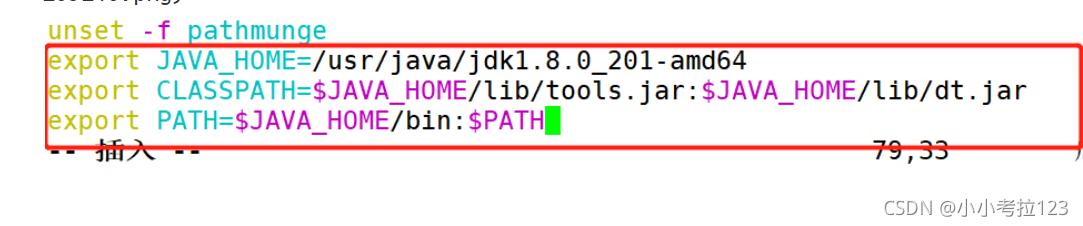 vim /etc profile?export JAVA_HOME=/usr/java/jdk1.8.0_201-amd64export CLASSPATH=$JAVA_HOME/lib/tools.jar:$JAVA_HOME/lib/dt.jarexport PATH=$JAVA_HOME/bin:$PATH