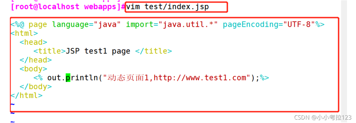 1. #關閉防火墻systemctl stop firewalldsetenforce 0?2. #切換至/opt,將安裝 Tomcat 所需軟件包傳到/opt目錄下apache-tomcat-9.0.16.tar.gz jdk-8u201-linux-x64.rpm?3. #安裝JDKrpm -ivh jdk-8u201-linux-x64.rpm ?4. #修改換將變量配置文件vim /etc/profileexport JAVA_HOME=/usr/java/jdk1.8.0_201-amd64export CLASSPATH=$JAVA_HOME/lib/tools.jar:$JAVA_HOME/lib/dt.jarexport PATH=$JAVA_HOME/bin:$PATH?5. #刷新配置文件source /etc/profile?6. #切換至/opt下,解壓tomcat包cd /opttar -zxf apache-tomcat-9.0.16.tar.gz ?7. #將解壓后的包拷貝至/usr/local/下并重命名cp -r apache-tomcat-9.0.16 /usr/local/tomcat?8. #添加用戶設置屬主屬組useradd -s /sbin/nologin tomcatchown tomcat:tomcat /usr/local/tomcat -R??9. #新建服務文件vim /etc/systemd/system/tomcat.service[Unit]Description=Tomcat#After=syslog.target network.target remote-fs.target nss-lookup.targetAfter=syslog.target network.target?[Service]Type=forkingExecStart=/usr/local/tomcat/bin/startup.shExecStop=/usr/local/tomcat/bin/shutdown.shRestartSec=3PrivateTmp=trueUser=tomcatGroup=tomcat?[Install]WantedBy=multi-user.target?10. #重新加載服務,并開啟,查看是否成功啟動?systemctl daemon-reloadsystemctl start tomcatss -ntap |grep 8080???#############新建動態頁面站點###########3?11. #切換至webapp下,新建test目錄cd /usr/local/tomcat/webapps/mkdir test?12. #建立動態頁面文件vim test/index.jsp<%@ page language="java" import="java.util.*" pageEncoding="UTF-8"%><html> <head> ? ? <title>JSP test1 page </title> </head> <body> ? ? <% out.println("動態頁面1,http://www.test1.com");%> </body></html>?13. #修改主配置文件vim /usr/local/tomcat/conf/server.xml刪除原來的站點模塊添加<Host name="localhost" appBase="webapps" ? ? ? ? ? ?unpackWARs="true" autoDeploy="true" xmlValidation="false" ? ? ? ? ? ?xmlNamespaceAware="false"> ? ? ? ? ? ? ? <Context docBase="/usr/local/tomcat/webapps/test" ? ? ? ? ? ? ? ?path="" reloadable="true" /> ? ? </Host>??14. #重啟服務,并在網頁測試systemctl restart tomcat.service http://192.168.59.105:8080/關閉防火墻