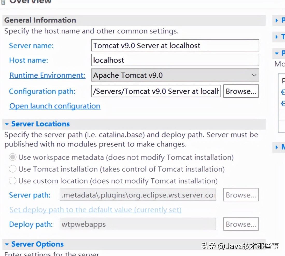 2.可以看到server path并不是下載的Tomcat的路徑,可以證明eclipse中確實(shí)是拷貝了一份Tomcat