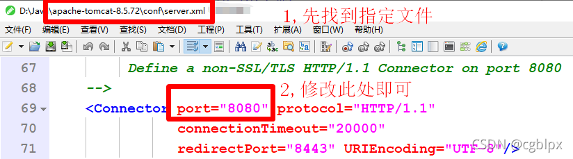 Tomcat軟件,默認使用的是8080端口號,也可以自定義端口號變成你需要的就可以了.