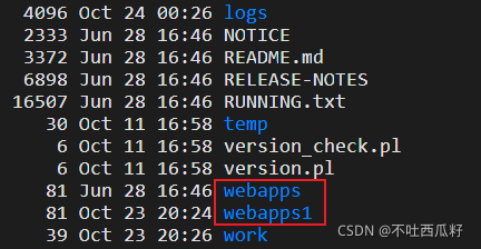 首先進入到 tomcat 的目錄下, 將其中的 webapps 文件夾進行一份拷貝, 用于第二個應用的部署.