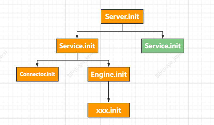 - 通過getServer().init() 方法完成了Server,Service,Engin,Connector等核心組件的初始化操作,這塊和前面的LifecycleBase呼應起來了。
