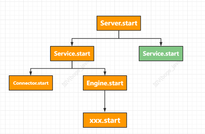public void start() {if (getServer() == null) { load(); // 如果Server 為空 重新 init 相關的組件}if (getServer() == null) { log.fatal("Cannot start server. Server instance is not configured."); return;}// Start the new server 關鍵方法--->啟動Servertry { getServer().start();} catch (LifecycleException e) { // 省略...}// 省略...// Register shutdown hook 注冊關閉的鉤子if (useShutdownHook) { // 省略...}if (await) { await(); stop();} }通過上面的代碼我們可以發現核心的代碼還是getServer.start()方法,也就是通過Server對象來嵌套的調用相關注解的start方法。