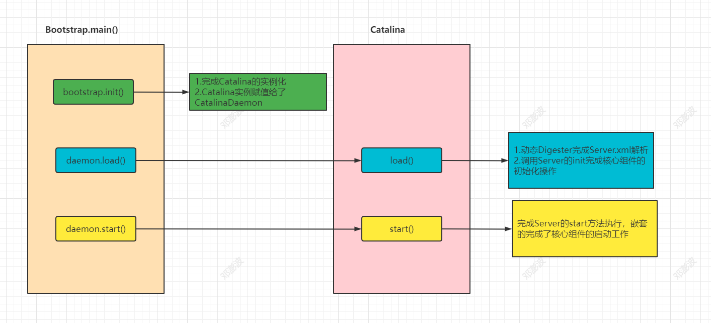 從圖中我們可以看到Bootstrap其實沒有做什么核心的事情,主要還是Catalina來完成的。