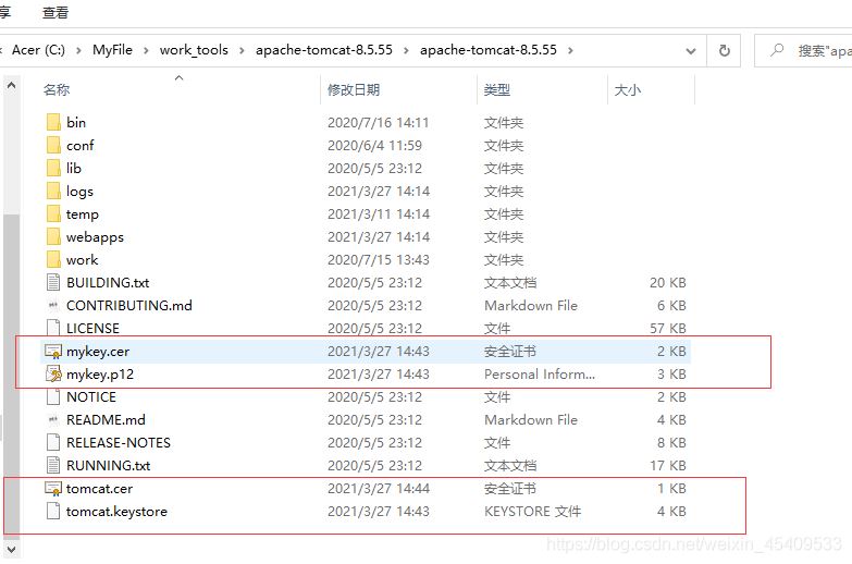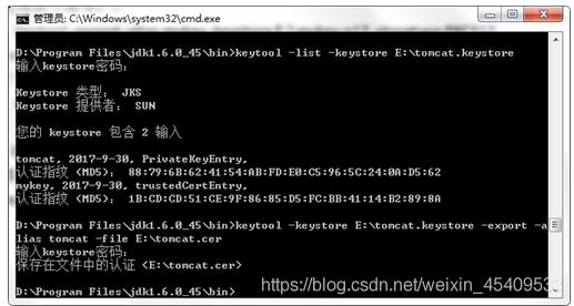 其中 tomcat.cer 提供給客戶端,tomcat.keystore供服務器使用