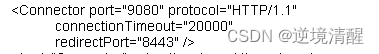 ??? <Connector port="8080" protocol="HTTP/1.1"?????????????? connectionTimeout="20000"?????????????? redirectPort="8443" />