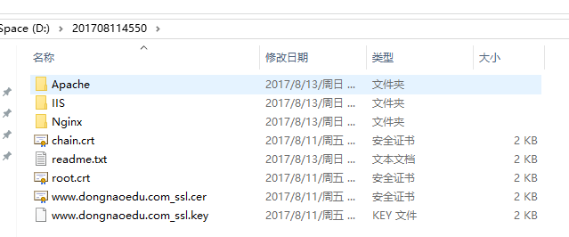 我花了一塊錢(qián)(一年)在愛(ài)名網(wǎng)購(gòu)買(mǎi)了一個(gè)Symantec Basic DV 證書(shū)。下載證書(shū)解壓之后是這個(gè)樣子的: