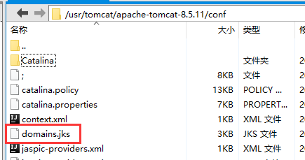 先把domains.jks證書(shū)上傳到Tomcat的conf文件夾下: