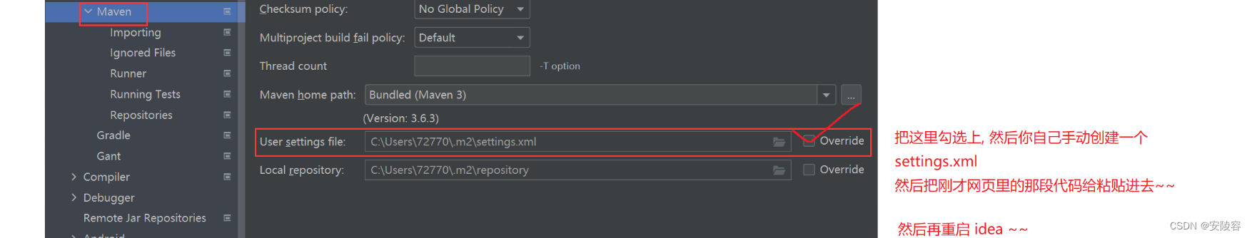 - 把這里的 maven 標簽頁下的這個 xml 配置給復(fù)制下來~~