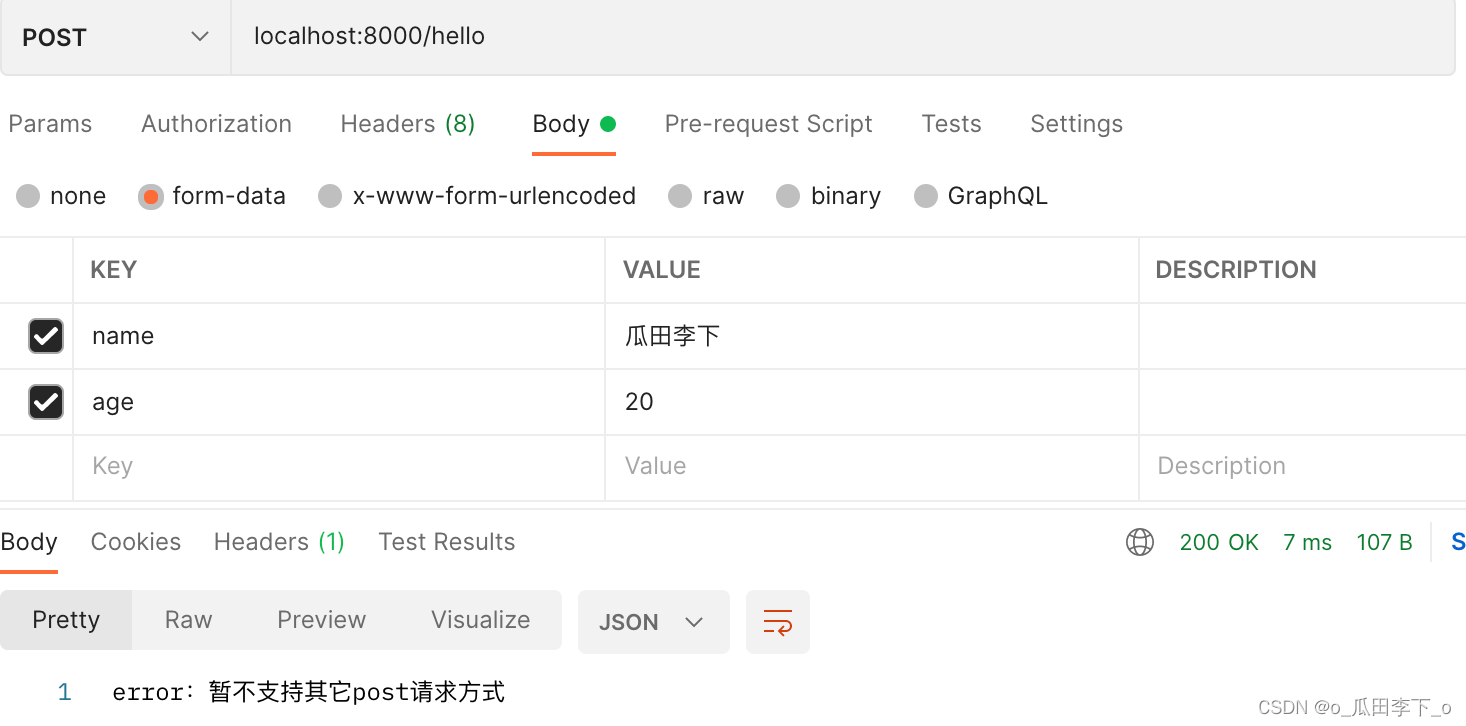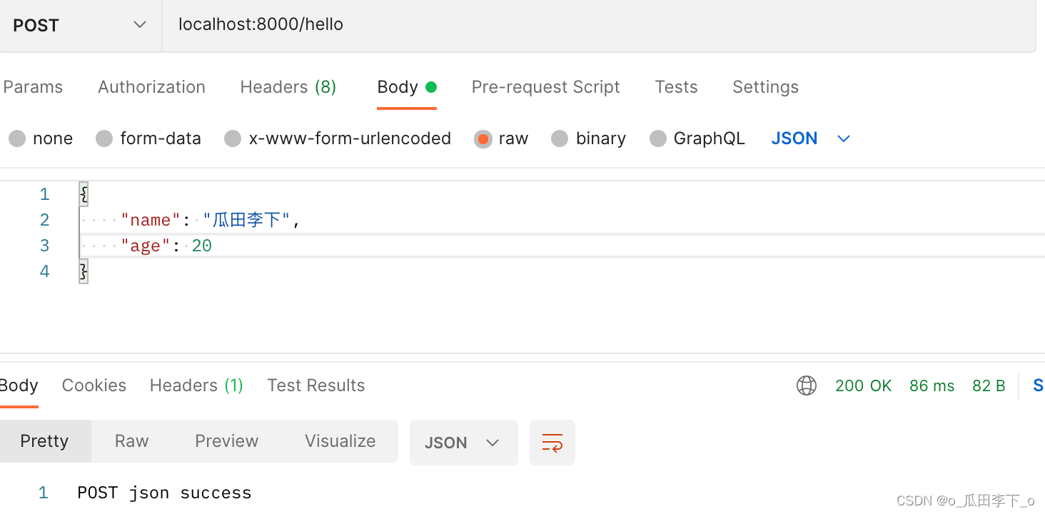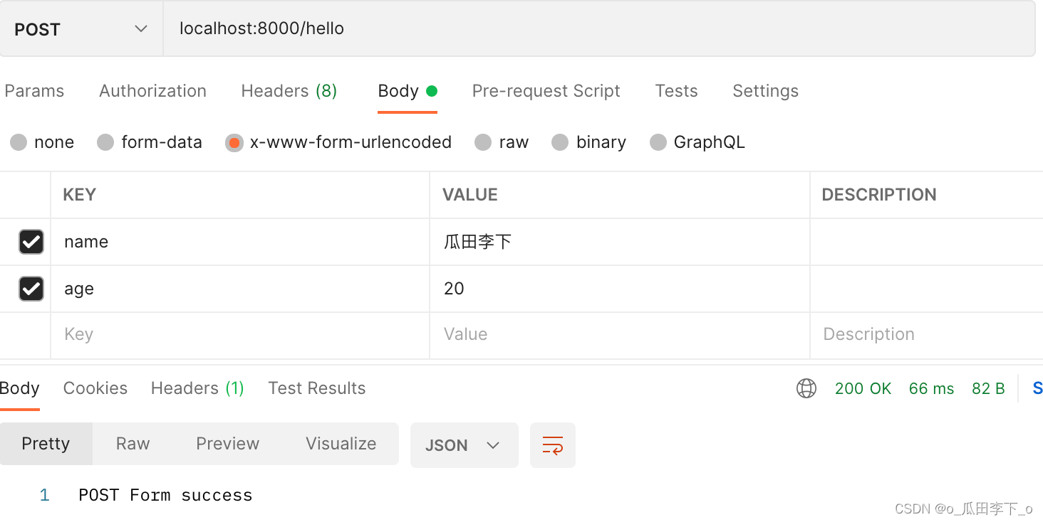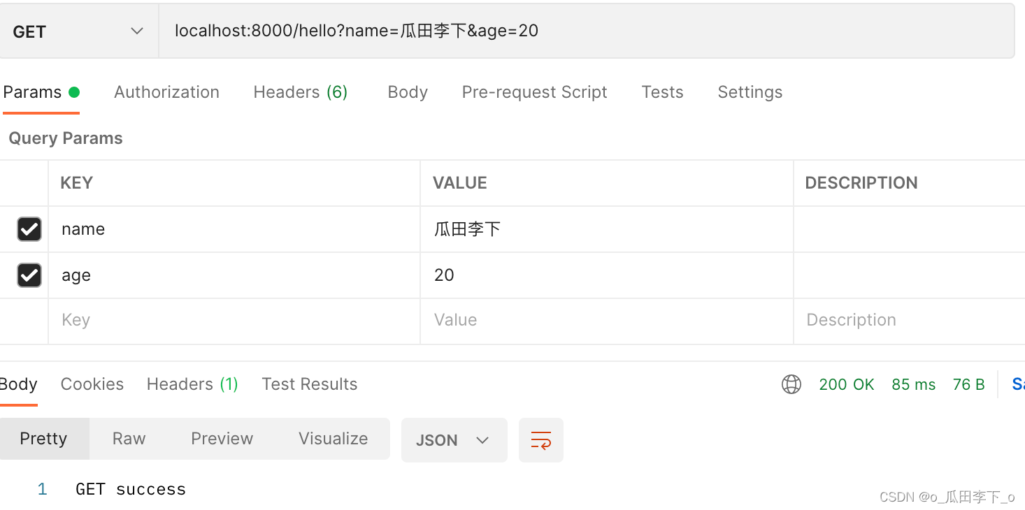 get請求:localhost:8000/hello?name=瓜田李下&age=20