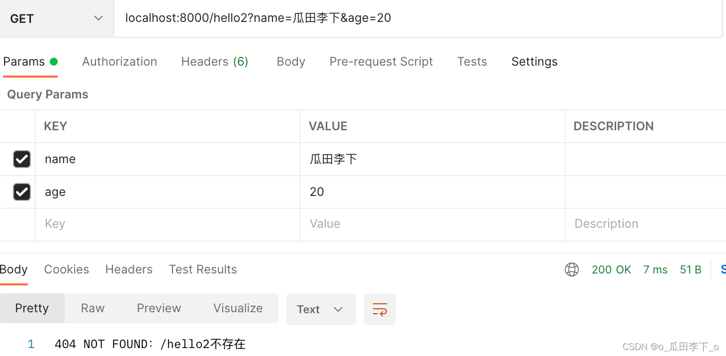 get請求:localhost:8000/hello2?name=瓜田李下&age=20