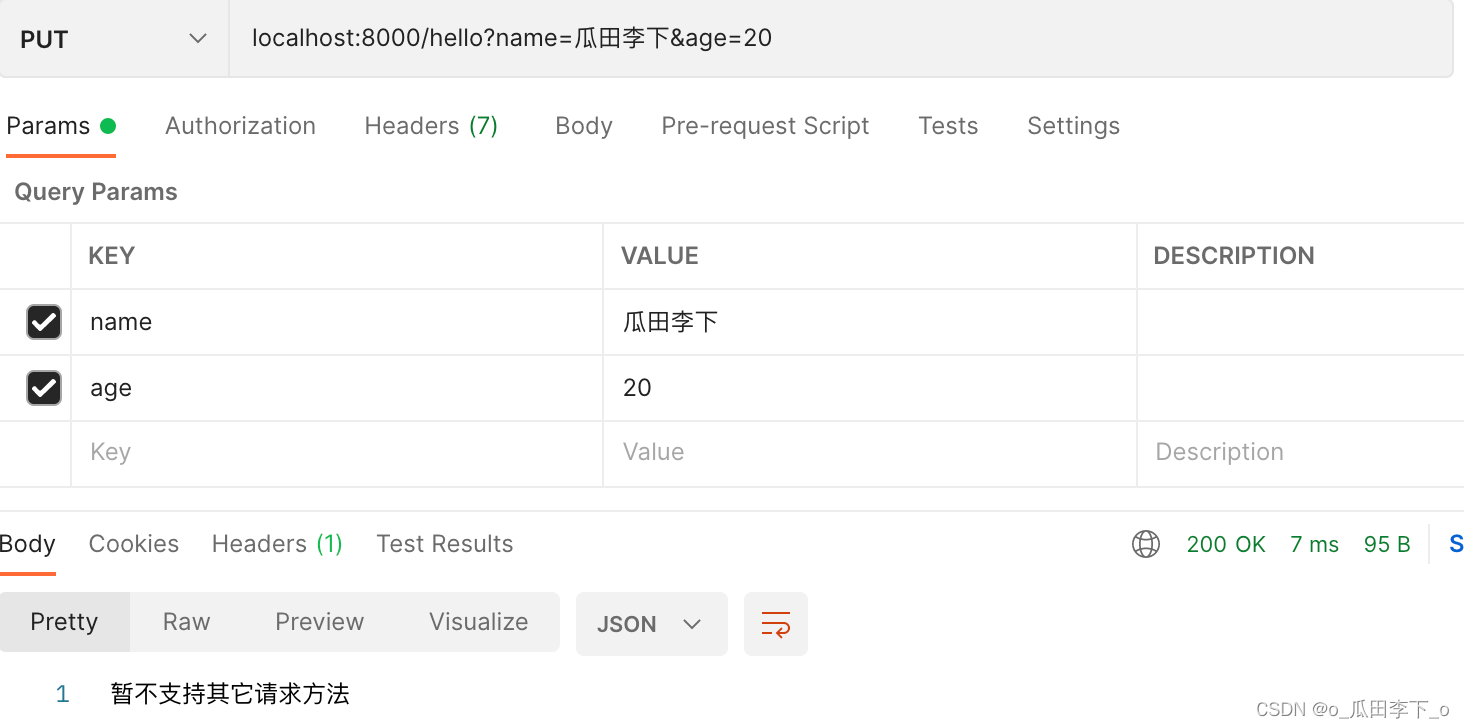 Put:localhost:8000/hello?name=瓜田李下&age=20