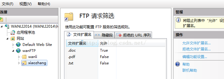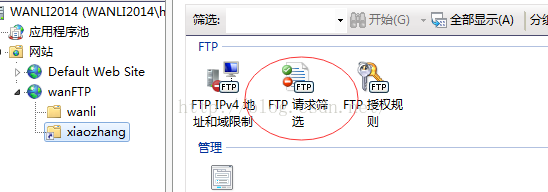 選擇站點下的文件夾,選擇FTP請求篩選,