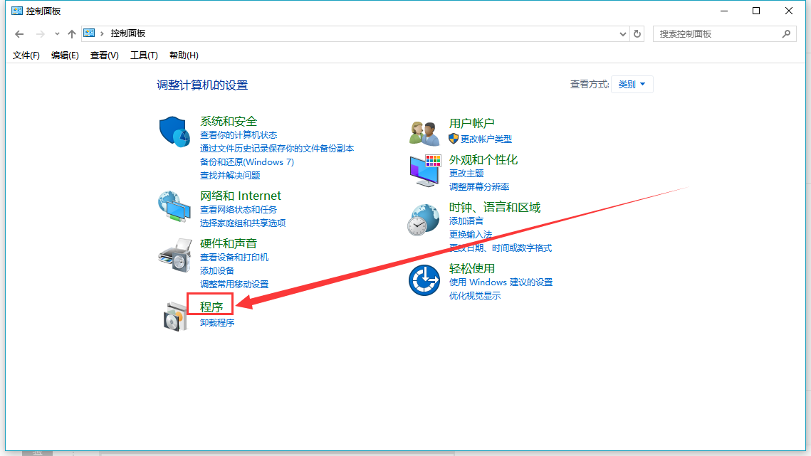 1.首先打開控制面板找到“程序”點擊打開,如下圖所示: