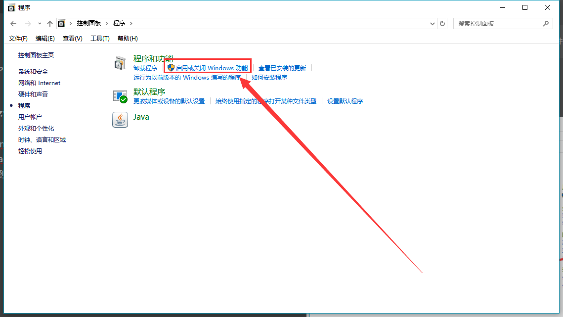 2.在打開的“程序”窗口中,找到“啟用或關閉windows功能”點擊打開,如下圖所示:
