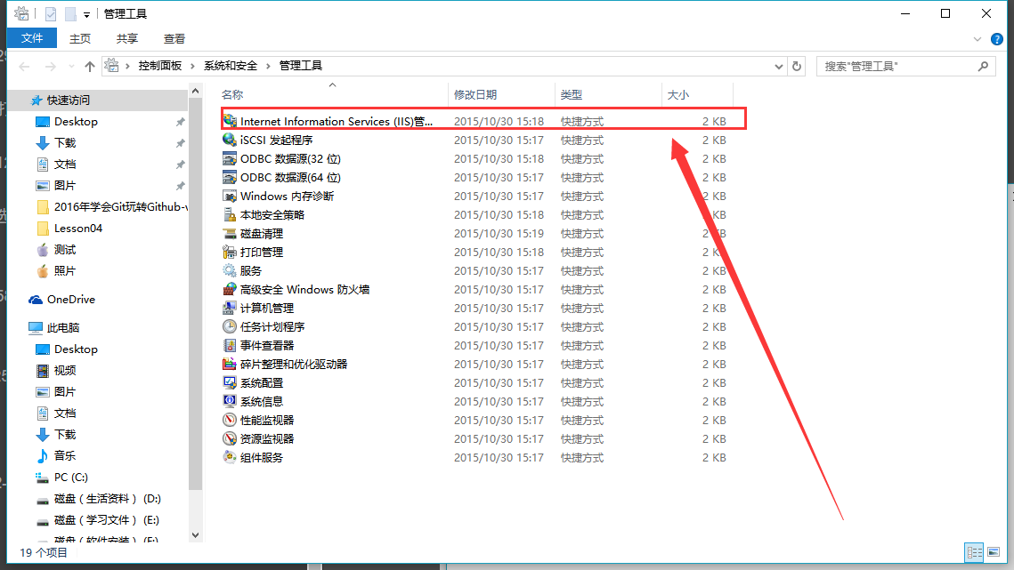 3.打開Internet Information Services (IIS)管理器