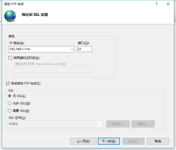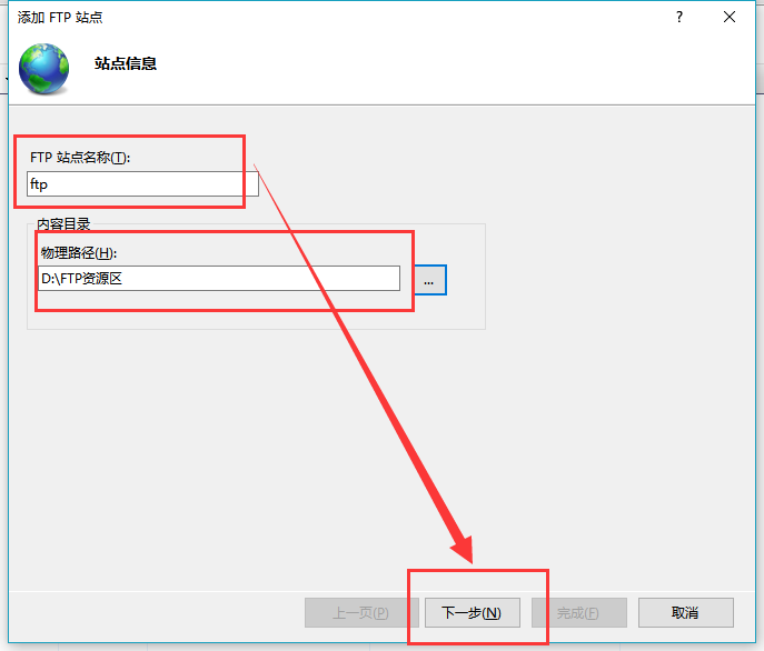 5.添加FTP站點點擊下一步