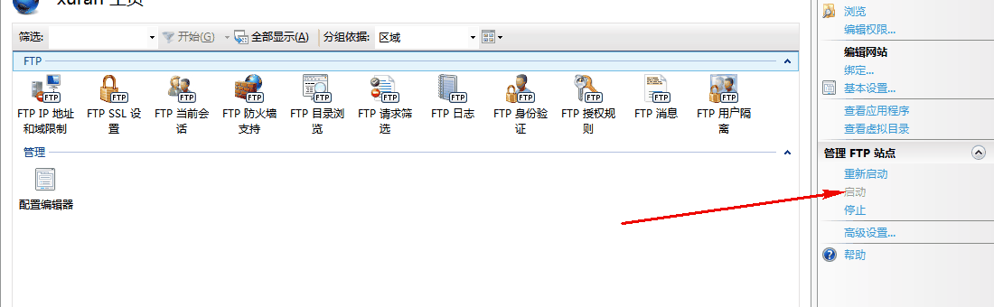 控制面板-管理工具-服務-找下microsoft FTP服務協議,右擊,啟動。回去IIS面板里面的啟動你的FTP站點。