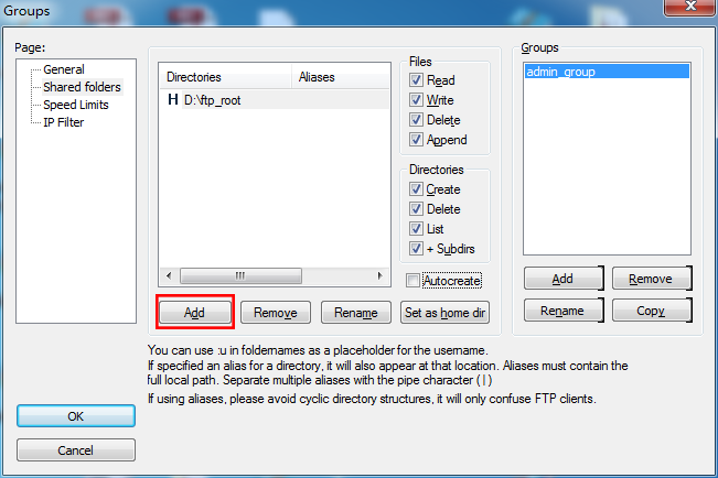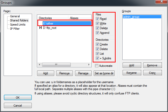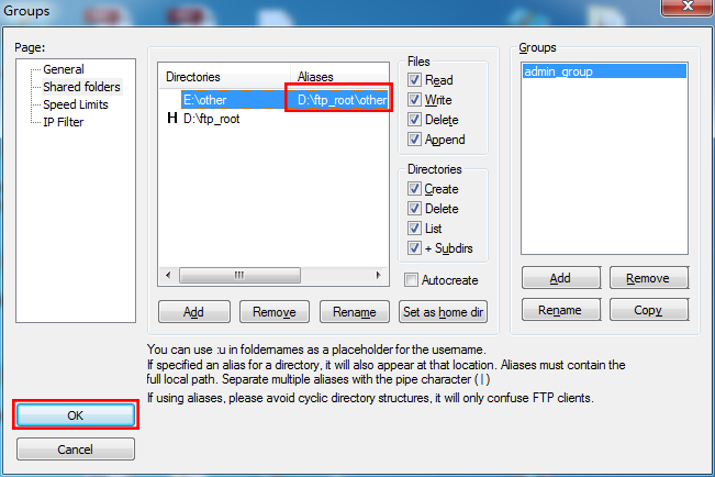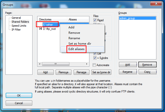 FileZilla Server ftp 服務(wù)器下通過(guò)alias別名設(shè)置虛擬目錄(多個(gè)分區(qū))